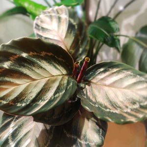 いつもの深夜のスーパーで。 カラテア 各298円 あり得ない! 4種類あったのですが そのうち2種類をお持ち帰り💨💨 品種名はタグ無しなので不明。 こんな綺麗な子、タグ付きでこのお値段で売ってたらクレーム来そうですよね😅 見てるだけで嬉しい葉っぱ達です😊 深夜にまっ黒のワンピース着て スーパーに植物とアイスクリームだけ買いに来るおばさんって不気味よねぇ。。。 気をつけないと!