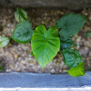 うちの野良クワズイモと野良シダ 隣のコインパーキングとの境の20センチほどの場所に。 賃貸だからクワズイモは撤去しないと、、、😁😁 シダを見ると、ここが山だったってことがよくわかります😊