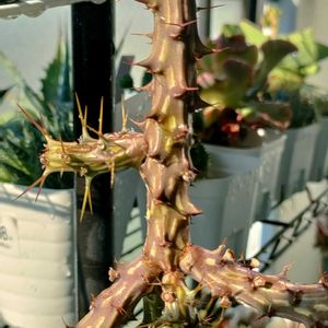 ユーフォルビア シザカンサ亜種 昨年分岐して、冬に成長点が変色してしまいどうなるのかと思っていたこちら。 潰れた成長点や根本に近い方からまた分岐してきました💪🏻 このド派手(宇髄天元)な幹がたまらない!