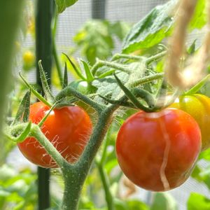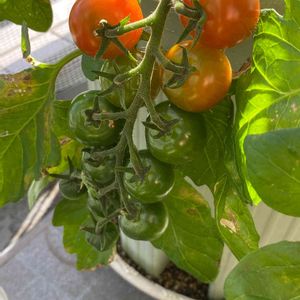 4品種植えたミニ🍅、「千果」が一番に色付き始めた^_^。もうすぐだね〜。