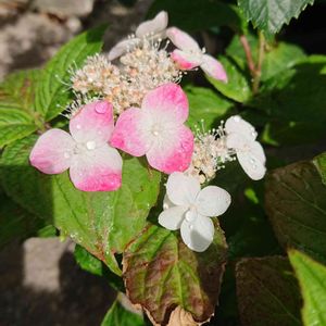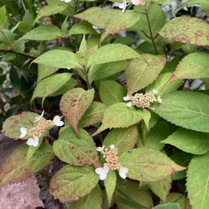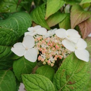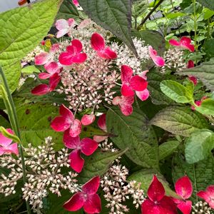 山アジサイ 咲き始めは白い花ですが、徐々に紅色に変化して いく「クレナイ」が咲いて来ました🌸 可愛い花です🌸