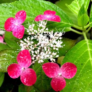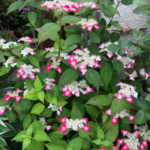 ヤマアジサイ クレナイ(紅)開花🌿 徐々に紅に変身していきます😊