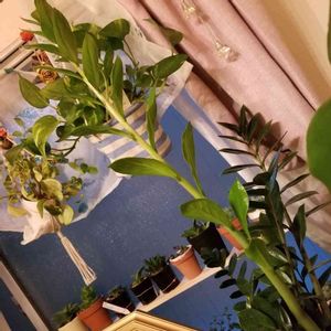先月末に購入したザミオクルカス。 左の購入時の新芽が、2週間ほどでグングン成長中。どこまで伸びるのか笑