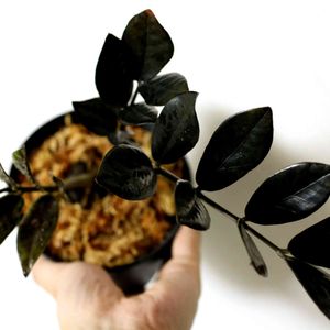 ザミオクルカスの黒いやつ。 新芽のうちは緑ですが、 展開すると真っ黒になります。 日本のように季節による温度差があるほど黒くなる…らしいです(眉唾) 別名:鴉