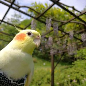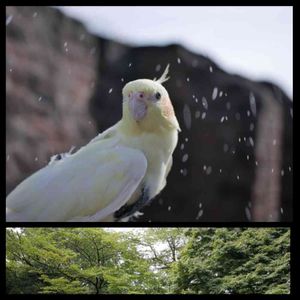 「スプラッシュ ゆず」 ゆずさんが落ち着かないし 暑いから霧吹きかけた所です。 顔がちょっと怖い😅 目がマジです。