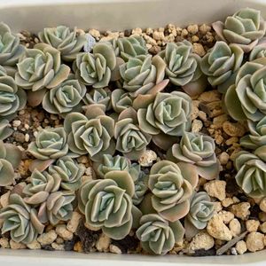 お久しぶりです😊 葉挿しラブリーローズさんの現在📸 小さいけど、しっかりラブリーな形❤ もうちょっと大きくなったら、いくつかお嫁入りする予定。 来年には可愛いラブリー丼できるかな✨ 今年の夏は焦げ多肉&徒長多肉大量でした😩この葉挿しもよく見ると焦げてるの😩 今週に入ってようやく最高気温が30℃を下回ってきたので、次の休みは植替え祭り予定です! 🏷毎月13日と14日は葉挿しの日 参加します🌱