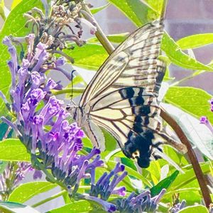 なんとか撮れました‼️ 飛びながら蜜を吸うアゲハさん💕 暑い🥵のにね💦