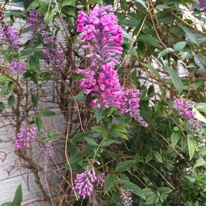 8/20㈭③ トウフジウツギまだ元気に咲いています。今年は梅雨が長かったからかもしれません。 右上にオレンジ色の花…ノウゼンカズラでしょうか。この場所にあったのね💡とびっくり。高い所でさいていたんですね〜。目の高さには全然咲いていません。 トウフジウツギ唐藤空木 ゴマノグサ科フジウツギ族 琉球フジウツギとも言われます。 園芸品種が沢山あるそうです。