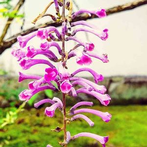 細くて青い小さな花を、一本の花茎に沢山つけて下がっています。