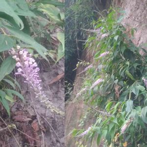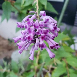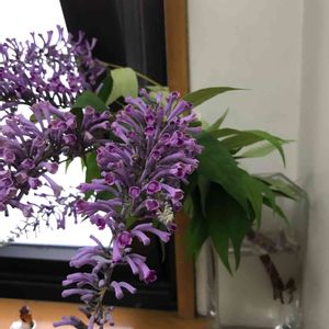 💜トウフジウツギ ゴマノハグサ科 フジウツギ属 濃い緑色の葉は対生で卵形 花の数は少なく円錐花序に途切れ途切れにつき、花序は頂生で片側に偏りほっそりとしていて、芳香はないそうです