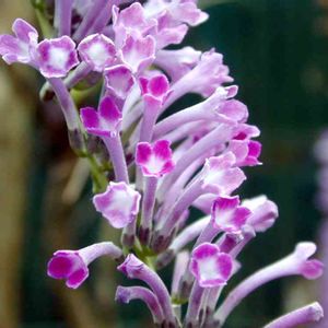 【トウフジウツギ(唐藤空木)】 中国原産の落葉低木。 4月から10月ごろ、枝先に細長い円錐花序を下に垂れ、赤紫色の筒状の花を多数つける。 サポニンなどを含む有毒植物で誤食すると腹痛を起こすとのこと。 自宅の小さな庭にて。