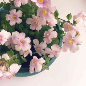 雨☔️ですねー 台風の進路気になります。 暗くなりがちなお天気ですが明日は晴れ☀️るようなので元気出していきましょう ダブルのバコパとビオラのリースを作りました🌼 ビオラが咲くまで養成中(^.^)