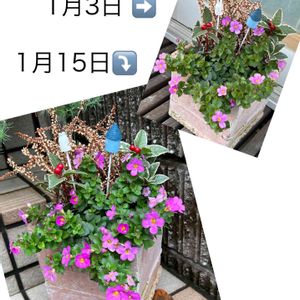 また寒さが戻り去年より全体的にしょんぼりな庭です わずかに陽当たりが良い場所で頑張っているフリルさんとバコパ💜💗 頑張って〜( › ·̮ ‹ ) 🏷青い花で新年会2023 🏷愛しの紫