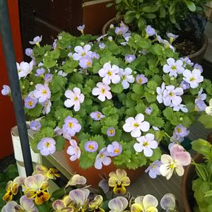 1.2枚目 何年か前の春の満開のバコパコピア 1枚目は薄い水色 2枚目は色違い2鉢育てました 3枚目 今年はピンクの可愛い子をお迎えしました 春の満開を楽しみに育てたいと思います