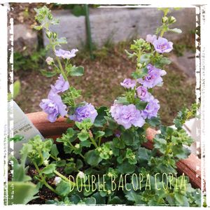 ダブル バコパ コピア 優しいカラーの寄せ植えを作りたいなぁと思っていたところ、見た瞬間に一目惚れ🥰 ガイラルディアともぴったり✨ 夏の暑さに強いバコパだけれど、乾燥は苦手とのこと。 忘れずしっかり水やりしないとね😘📝