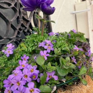 アネモネポルトダブルと、 コピア(バコパ)のブルーチームで、 寄せ植えしてみました。 これから寒さが更に本番を迎える中、頑張って咲いて欲しいな🥰 あと、アネモネ会のことを知ったので、🏷つけてみました。 よろしくお願いします🥰