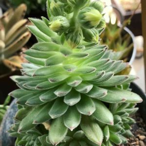 久しぶりのお天気☀️ この大雨で太陽の有り難みを痛感😅 徒長した多肉ちゃん、多数続出💦 この子も咲く気、満々やわ😆💕