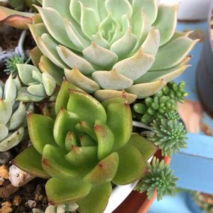 …暑い暑い( ˟ ⌑ ˟ ) 暑いから日中はベランダにも出ず夕方暗くなってくるといい写真が撮れず、投稿せずにいたら、もう7月半ば!!ヤヤヤヽ(´Д`;≡;´Д`)ノ ヤバイッテ!! うちの多肉達はカラっカラ管理で暑さを耐えてます。 写真はぶっ込み放置鉢の美人さん。 どこから来たのかも覚えてないけど、気づけばもしや斑入りだったの? ってかもはや名前も分からないのに。めちゃめちゃキレイじゃないですか?! 寄せ植えとかで落ちた葉や使わなかったカット苗など捨てられない子達をぶっ込んだ鉢。 私はズボラなのでひとまとめですが、みなさんは細々した子達、どうしてますか?