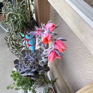 暑い日が続きますねぇ💧 暑すぎて多肉棚DIYをする気になれませんw 蒸れが怖くて水やりができませんw 寄せ植えしていた多肉ちゃんから立派な花が咲きました。
