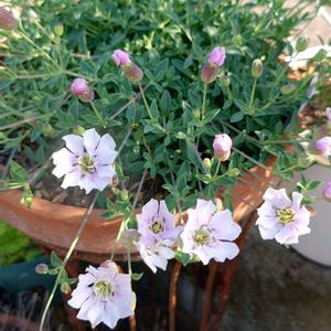 シレネ ユニフローラ 小さくて 蕾も付いてないのをお迎えしたので 早く栄養のある土に植え替えたから 元気モリモリ(#^.^#) 一株なのに 2色で咲いてます(#^.^#) PWラグランジア 見切り品500円よ〜🩵🩷 ブライダルシャワーと 品種不明につき 処分だって PWは 何を買っても優秀よ〜 なんか オーロランジアみたいな気がする(#^.^#) だったらいいなあ〜(人*´∀`)。*゚+🩷🩵🩷 見頃は来年かと思ってたけど 今年も イケるかも〜(#^.^#)♥
