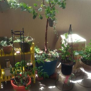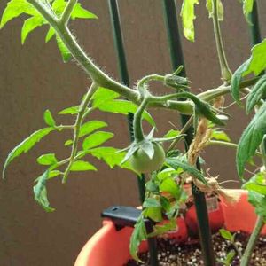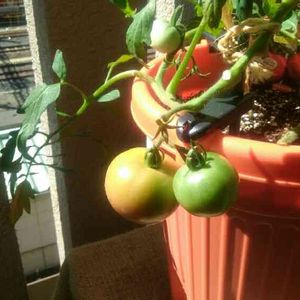 大阪は強風です!写真中央のゆすらうめが、風に煽られて折れそうなくらいしなっています😱トマトのつよまるも、台から下ろして避難中!