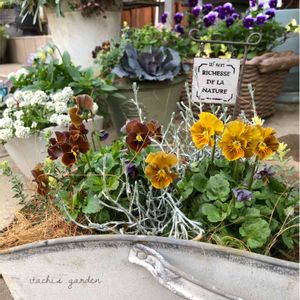 おはようございます☀ 2週間程前に定植した寄せ植え🌸 ジュリアン、アリッサムMIX、ロータスブリムストーン、フリルビオラ、ヘデラを寄せています💕 今日も素敵な1日をお過ごし下さい😊