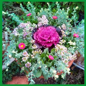 今日の お花 葉牡丹 寄せ植えしてます。 葉牡丹 アリッサム デージー ロータスブリムストーン