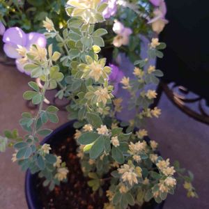 ロータスブリムストーン🌱 時々激しく雨が降ります☔ロータスブリムストーンもびしょ濡れです✨上の方は綺麗にふさふさですが、下の方は枯れて葉っぱ落ちまくりです😂😂😂切り戻す?植え替える?いろいろ悩ましいですね😆🌱