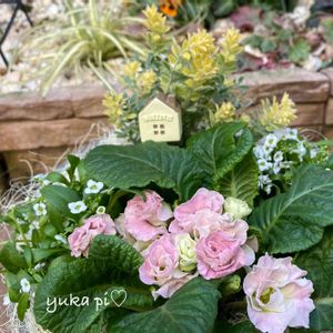 プリムラ♡ キャンディマジック💕 春っぽい感じで寄せてみました🌸 こちらは強風で🌀 寒かった💧 春はまだまだ遠いかなー? あ。。中央にムスカリ潜んでます\(//∇//)\