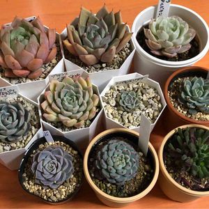 The エケベリア感漂うシリーズ🌹 この形が好きで多肉ちゃんにはまりました!枯れないお花ですよね🌼 特に上段真ん中のジロが最近のヒット!!淡いブルーとピンクが可愛すぎます!!