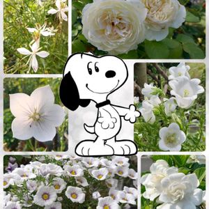 こんばんは〜( *´꒳`*)੭" 今日は白いお花を集めました🤍 クチナシはお隣さんちで咲いているお花ですが それ以外は我が家で咲いています😅 🏷毎月2日はスヌーピーの日🤍 🏷白い水曜日🤍 🏷水曜ローズショー🌹 🤍🌹❄️🫧.•*¨*•.*♬ 🤍🌹❄️🫧.•*¨*•.*♬ 🤍.•*¨*•.*♬🌹❄️🫧🤍