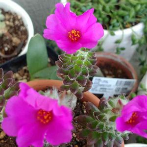 多肉のポーチュラカ 午前中だけしか咲かないんですって❣️ お隣の花屋さんにいたので、お連れしました🌸 この後どんな姿になっていくんでしょうね⁉️