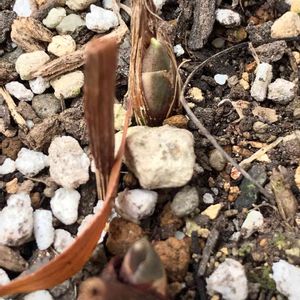 冬はなんとも動きがなく、久しぶり 土をじーっと見て気がつく春の準備。 写真は日本スズランの芽。