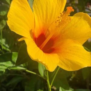 ようやく咲いてくれた 我が家のハイビスカス❁⃘*.゚( ⁎ᵕᴗᵕ⁎ )♡ ハイビスカスは4鉢育てていますが この鉢は背丈だけ大きくなって 中々咲いてくれなかったのですが この秋ようやく咲きました✨ 綺麗です( ⁎ᵕᴗᵕ⁎ )♡