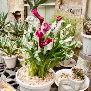 カラーフローズンクイーン 3年くらい植え替えしつつ、放置してましたが、開花までは辿り着けない お芋さんがいるってことはアロイド アロイドでも強い感じ… 左の白い器が大きすぎて、用土もヘンテコりんだったので、 なんちゃって猫チップ的なものに変えてみます。 ココヤシ🌴心強い‼️ 開花待ちます…
