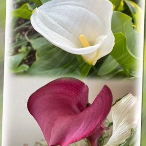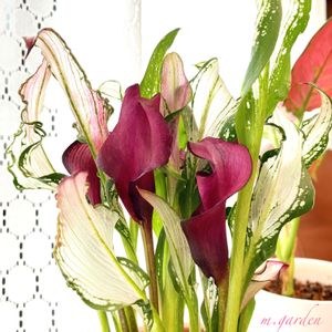 おはようございます😊 GSの今日のお花 カラー サトイモ科オランダカイウ属 長年、地植えで咲いている白いお花と、ガラス細工の様な葉を持つ赤いフローズンクイーン💖 全国で、豪雨や突風の被害が出ていますね😨 お見舞い申し上げます🙏 今日は穏やかな一日になります様に、お気をつけてお過ごしくださいね🤗