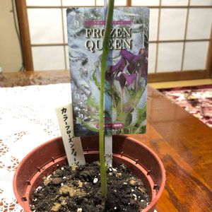 他のカラーは葉っぱもりもり出てるし、花も咲いてるのに、この子はまったく動きがないから、もう枯れてしまったんだと思ってた。 捨てなくて良かった! 先祖返りで有名なフローズンクイーンはこれからどうなるのか??