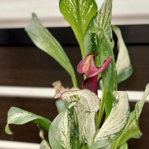 花が咲きました🌸 2年目は葉っぱに斑が出なくてガッカリだったけど、3年目にしてなんとかそれなりに斑が入って花が引き立つお姿にꕤ𓈒𓂂◌ ちょっと徒長気味だけどこれは来年の課題に😄