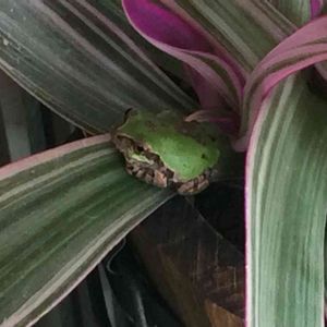 こんばんは🐸 どうしてウチが好きなの❓ だいぶ離れた草むらの所にほってもほっても帰ってくるアマガエル3人衆の一人😰😰諦めました。糞しても虫食べてくれてるんだろうから我慢すっか🐛