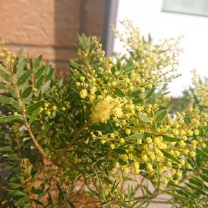 先日ネットショップでお迎えしたテレサという品種のミモザ。 届いた時は蕾だったのに、もう開花しはじめてる〜! 小さな花が可愛らしいです😊
