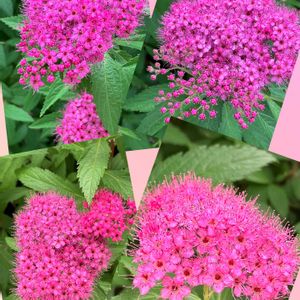 ❶ モフモフのピンクのシモツケ🩷🌿 ❷ 近所の大島桜🌸は、今は黒い実⚫️いっぱいつけていて、地面にも落ちまくっています、踏みつけないように歩いています♪ (灬˘╰╯˘灬)🩷⚫️。・゚
