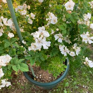 開花🌹NO6 ノイバラのロサ ムルティフローラ ちょっと剪定しすぎたかな〜 下の方しか咲いてないかも(・∀・)ゞ でもシュートは沢山なので何本か✂️せねば