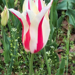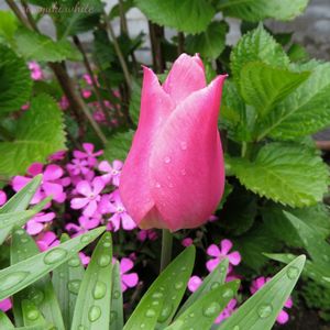 1月25日 今日のお花「チューリップ」🌷です。 雨上がり🌈に、ひょっこりしてるところを撮りました😅 チューリップは、可愛らしいお花。 その可愛らしさを表現して撮るのが、意外と難しい🤔 追記🌸 なんと翌日の今日のお花が「サクラソウ」でした‼️ サクラソウにも、色々な種類があるようで、 このチューリップと一緒に写っているのは「日本サクラソウ」と呼ぶらしいです😃
