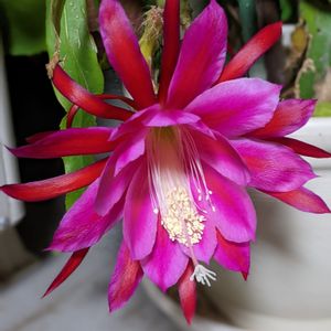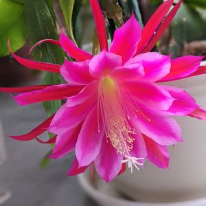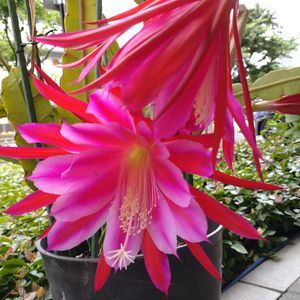クジャクサボテン🌸 寒川体育館入口に有るのですが、綺麗な花を見る事が中々出来ません😅