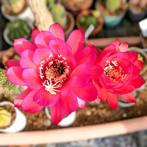 ヘリアントケレウス属 美女丸です。 少し体調を崩して故障者チームに入っていましたが、綺麗に咲きました。 ②の白い蕾は夜咲きの奇想丸です。