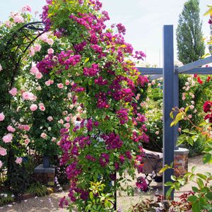 2022/05/28 昨日のpicより イツパイ撮して来て😅 皆様にも見て頂こうかな? 🌹ジョアン・ビールス🌹 紅くて一重かな? アーチに使われています💕 風で花びらがヒラリ ヒラリ🍃