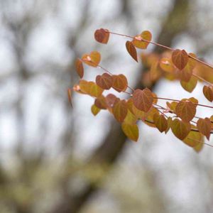 たくさん並んだ赤いハート。 春の紅葉、優しい色づき。