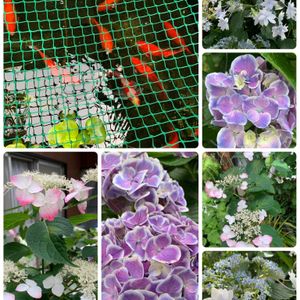 実家でもアジサイが沢山咲いてました。 母が座ってる場所からアジサイが見えるように、手前にあった木の枝を兄が切ったそう。 そして、この金魚🐟 まるで鯉のように育ってます。 側に立つ👰だけで、餌ちょうだいのアピールが凄い😃可愛い金魚です😍