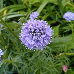 おはようございます ギリア レプタンサがいい感じ 𖤣𖥧𖥣。𖤣𖥧𖥣。 まぁるく咲く、ポンポンお花がお気に入りなのです🔵 (>-<///)キュン♡ 奥に見える小花は ギリア トリコロール そろそろ終盤です 咲く時期が同じだったらいいのになぁ😅 🏷美しく青きドヨウ 参加させていただきます💙