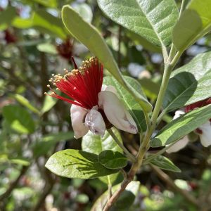 フェイジョアの花 通り道のお宅の樹木🌳 先日の散歩道